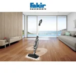 بخارشوی فکر مدل MAXI CLEANبخارشوی ایستاده فکر 10 در 1 مدل ماکسی کلین FAKIR – MAXI CLEAN به صورت ملایم و اکولوژیکی از لوازم کاربردی و پراستفاده برای نظافت کلیه سطوح هست که با عملکرد بخار داغ و قوی خود به خوبی سطوح مختلف و گوناگون را تمیز و ضدعفونی میکند و با استفاده از بخار داغ سطوح شما را با قدرت بسیار زیاد تمیز خواهد کرد. بخار شوی ماکسی کلین آلودگی و چربی موجود در کلیه سطوح را به طور موثر و بدون مواد شیمیایی پاکسازی نموده و همچنین 99٪ باکتری ها و عوامل بیماری زای موجود در این سطوح را از بین می برد. کمپانی فکر آلمان با فناوری بروز محصولاتی با نیاز روز به مشتریان خود ارائه می کند تا رضایت مشتریان خود را جلب نماید. به کمک طراحی ارگونومیک مولتی فلکس ، مفاصل چرخان ، کفی بخارشوی با چرخش 180 درجهای و سیستم پاک کنندگی قوی می توانید به راحتی به مکان های با دسترسی دشوار ( زیر مبل و گوشه ها، درزها و شکاف های تنگ و باریک) و سخت صعب العبور برسید و نظافت خود را انجام دهید. این دستگاه وسیلهای کاربردی برای پاککردن سطوح مختلف نظیر سنگ، پارکت، فرش، موکت، اپوکسی، لمینت، چوب، سرامیک، شیشه، دیوار، سرویس های بهداشتی، توالت فرنگی، اجاق گاز، فر، مایکروویو و سینی ها آنها و سایر سطوح بسیار مناسب هستند که با بخار داغ و قوی می تواند تمیز نماید. با توجه به وسایل جانبی و سری های مختلف حتی مکان های غیر قابل دسترس را می تواند به راحتی پاکسازی کند. بخارشوی مکسی کلین با وجود مخزن آب بزرگ به حجم 350 میلی لیتر و توان خروجی 1300 وات تجربه ای تمیز کردن فوق العاده و همچنین با وجود فیلتر از بین برنده سختی آب و قابل جابجایی از کالسی (Calcium) شدن بخار شستشو جلوگیری کرده و طول عمر طولانی دستگاه را تضمین می نماید. با وجود طول سیم زیاد و شعاع عملکرد 6 متری فضای حرکت زیادی برای شما فراهم می نماید و هیچ گونه آزار دهندی برای جابه جایی پریز ها ندارد. دستگاه پس از 30 ثانیه شروع به گرم شدن شده و زمین شوی آماده استفاده می شود و با بخار ایجاد شده با لکه های سمج شروع به مبارزه می کند. این بخارشوی شامل یک نازل پنجره/ کف، یک نازل شکاف، یک نازل جت، یک برس کوچک و بزرگ، اتصال کف، یک بالشتک کف،یک اتصال کفگیر،یک اتصال لباس، 2 پارچه میکرو فایبر برای کف، یک قاب کشویی و یک پیمانه و قیف می باشد.