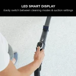 با نمایشگر هوشمند LED به سادگی بین 3 حالت تمیز کردن و تنظیمات مکش جابجا شوید. این کنترلهای لمسی بصری به راحتی در دسته قرار گرفتهاند، بنابراین میتوانید بدون خم شدن یا شکستن گام، بین حالتها، شروع و توقف کنید.