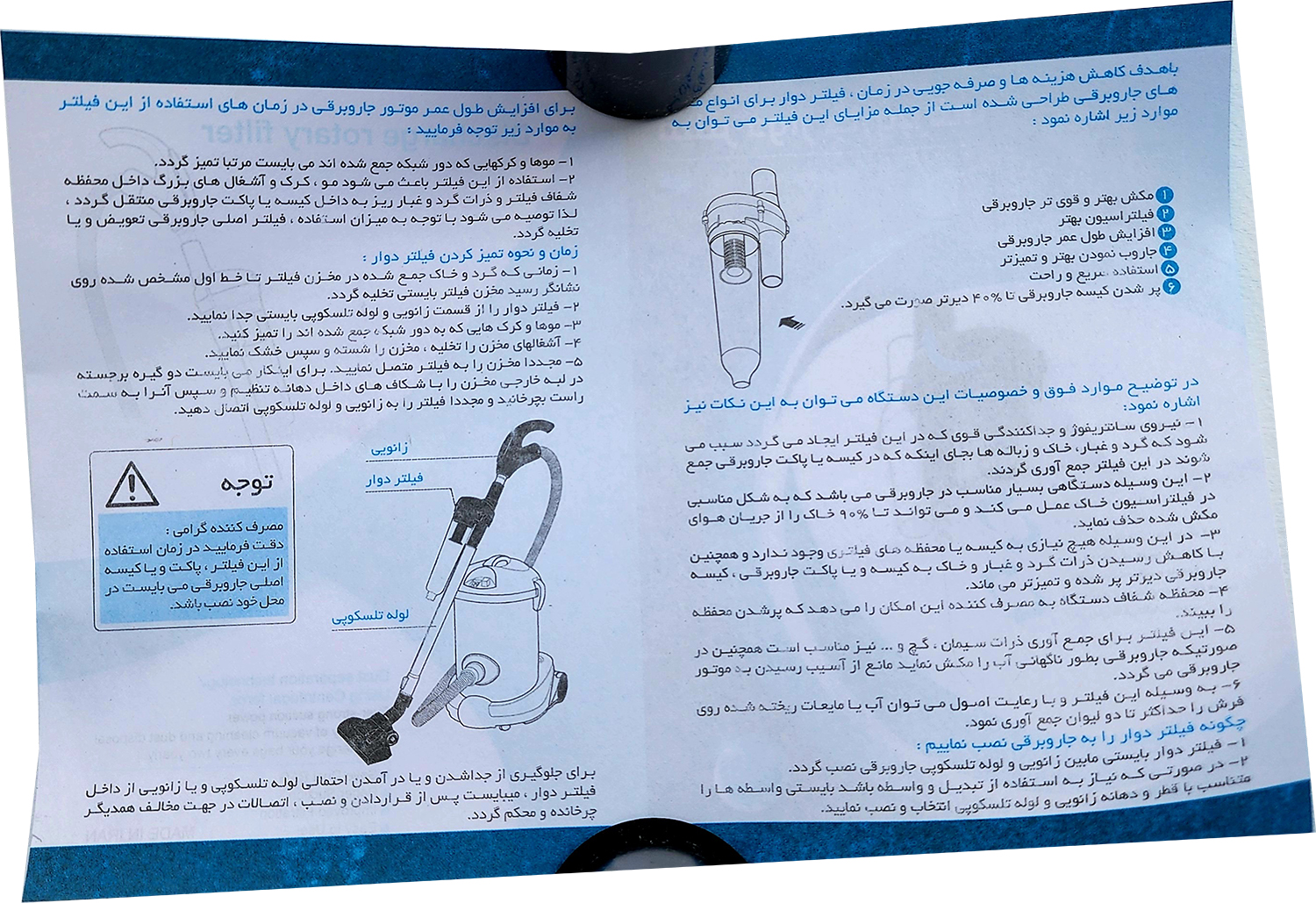 مخزن درجه 1 و تنگ جاروبرقی کامل آشغال گیر